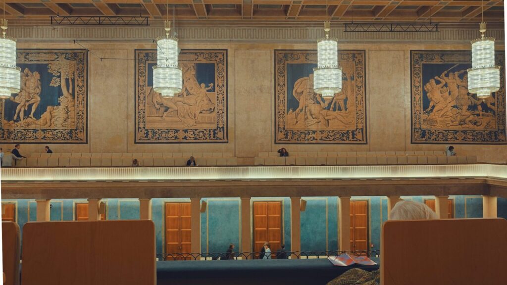 ヘラクレスザールは、長方形のシューボックス型ホール。 「ヘラクレス・ザール」という名前は、客席の上部にぐるりと飾られたゴブラン織りのヘラクレス物語のタペストリーに由来するそうです。