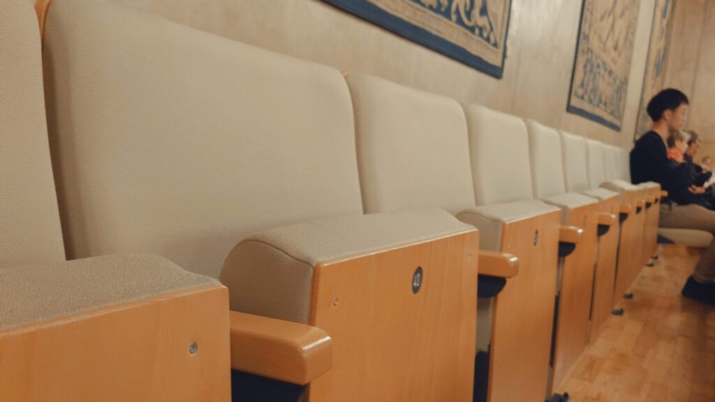 客席は、建物の2階にある1階席と、その上の2階席に分かれています。 全体で約1,300席とコンパクトなため、1階後方でも舞台が遠く感じにくいのが特徴です。