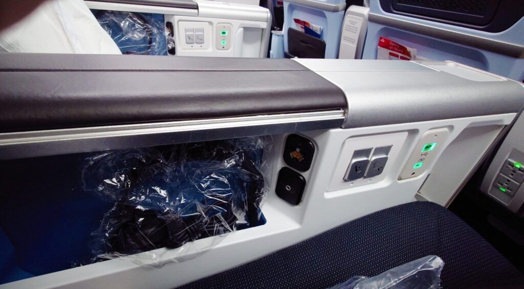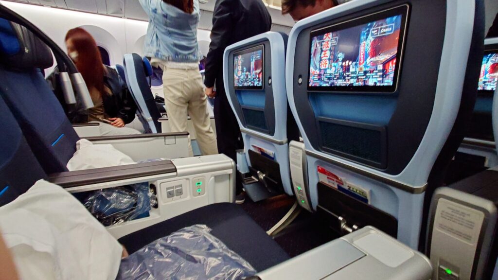 エコノミーより前方のゾーン 搭乗・降機の順番がエコノミーより早くなります。 特に乗り継ぎを急ぐ方は便利でしょう。 ※今回搭乗した機材には、フットレストはありませんでした。