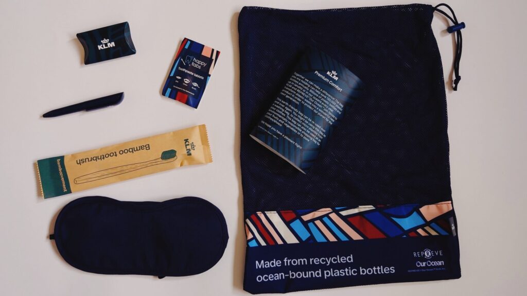 どちらも温かく提供され、機内食としては味もしっかりしていて美味しかったです。軽食でサンドイッチの提供もありました。ケースはオランダらしいアイコンがデザインされて、かわいらしいです。